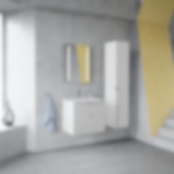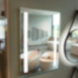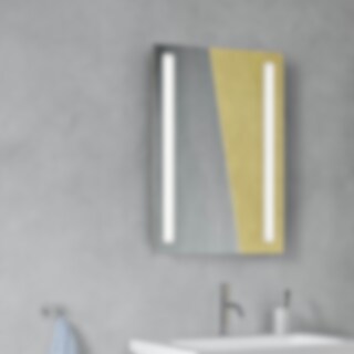 I lodrät riktning löper två bakgrundsbelysta ljusutskärningar som är integrerade i spegelytan, vilket gör rengöring enkel och problemfri. Bakom de sandblästrade ljusutskärningarna sitter LED-armaturen.
