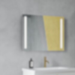 I lodrät riktning löper två bakgrundsbelysta ljusutskärningar som är integrerade i spegelytan, vilket gör rengöring enkel och problemfri. Bakom de sandblästrade ljusutskärningarna sitter LED-armaturen.