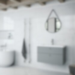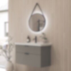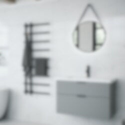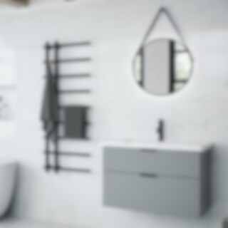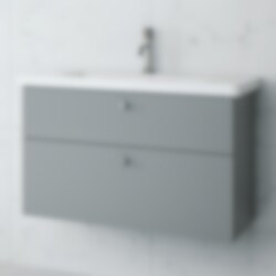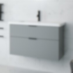 Kommoden och tvättstället Matilda är färdigmonterat och den medföljande upphängningsskenan gör monteringen på vägg snabbt avklarad.