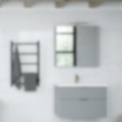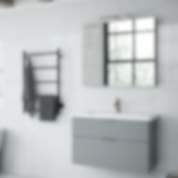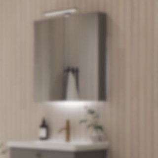 Spegelskåpet är färdigmonterat och den medföljande upphängningsskenan gör montering på vägg snabbt avklarad.