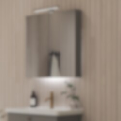 Spegelskåpet Melina har dubbla spegeldörrar med spegel på utsidan såväl som på insidan. Dörrarna är ljudlösa, mjukstängande och självklart går de att öppna i en vid vinkel så att du kan ställa dem emot varandra och spegla dig bakifrån. Skåpets underkant är något upphöjt bakom spegeldörrarna så att du enkelt kan öppna dem. Skåpet har två stycken flyttbara glashyllor. Komplettera spegelskåpet med tillval såsom el-uttag och belysningsarmatur. Välj mellan bredderna 650 mm, 800 mm och 1000 mm.