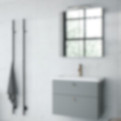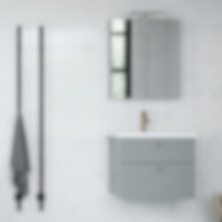 Spegelskåpet är färdigmonterat och den medföljande upphängningsskenan gör montering på vägg snabbt avklarad.