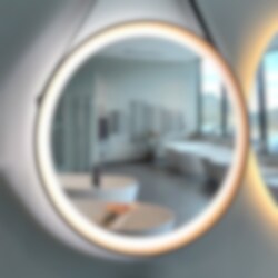 Ljusramen är helt integrerad i spegeln vilket gör rengöring enkel och problemfri. Badrumsspegeln Frans har en diameter på Ø 550 mm och är IP44-klassad.