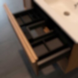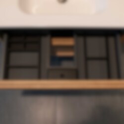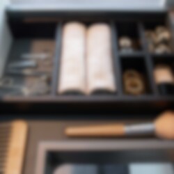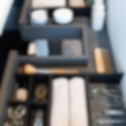 Förvaring går det aldrig att få för mycket av, se därför till att inred dina lådor med vår snygga träinredning i svartbetsad ek. De funktionella avdelarna och asken med lock ger ett lyxigt utryck.